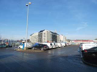 Det händer saker här nu. På platsen mellan Rambergsvallen/Lundbybadet och Volvo Penta byggs det ett kvarter med rejäla dimensioner. 7 våningar som gör ett tungt intryck från utsidan. I reklamen ser innergårdarna dock bättre ut. Både hyresrätter och bostadsrätter, med verksamheter i bottenvåningarna. Affärer, gym och restauranger.